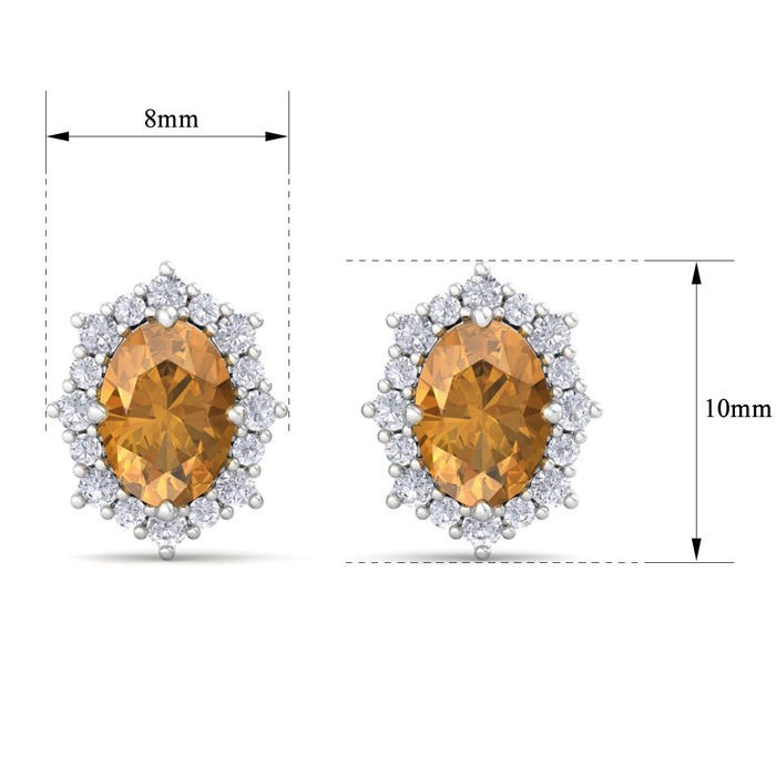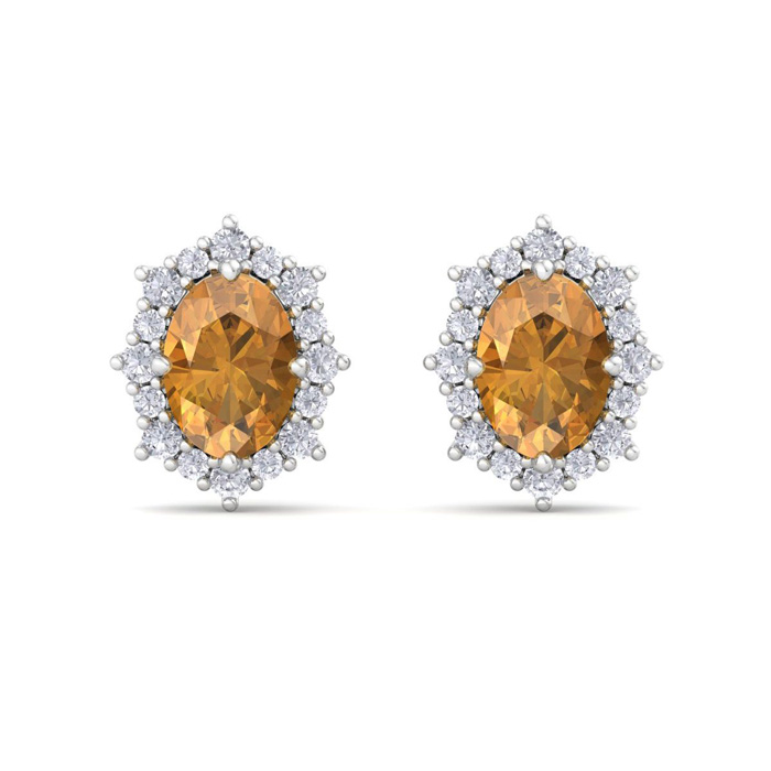 2 Carat Oval Shape Citrine and Diamond Earrings In 14K White Gold