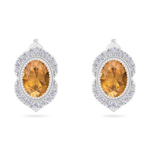 2 Carat Oval Shape Citrine and Diamond Earrings In 14K White Gold