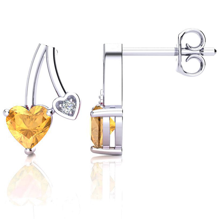 3/4 Carat Citrine and Diamond Heart Earrings In Sterling Silver