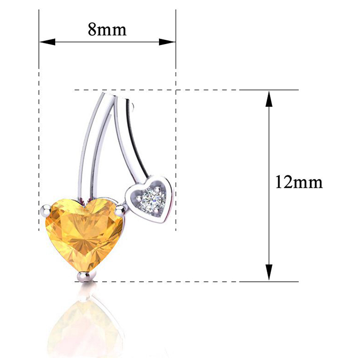 These stunning citrine earrings features two 5x5mm heart shape citrine gemstones each weighing approximately 3/8 carat. It is surrounded by 2 sparkling diamonds in I-J color, I1-I2 clarity at 0.01 carats. Total carat weight is 3/4 carat. These earrings are crafted in sterling silver and have comfortable and secure post with friction backs.