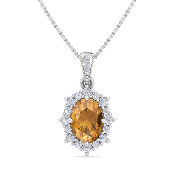 1 1/3 Carat Oval Shape Citrine and Diamond Necklace In 14K White Gold