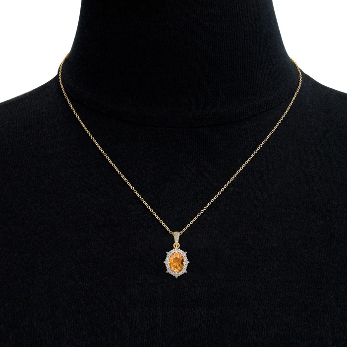 Retrograde Birthstones™ 1 1/3 Carat Oval Shape Citrine and Diamond Necklace In 14K Yellow Gold