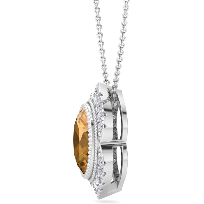 1 1/5 Carat Oval Shape Citrine and Diamond Necklace In 14K White Gold