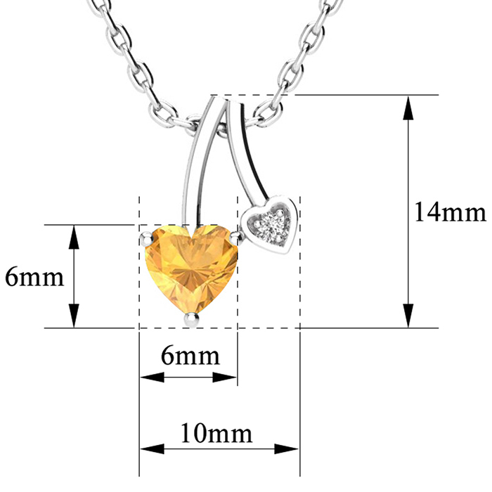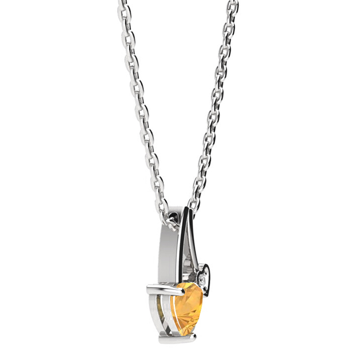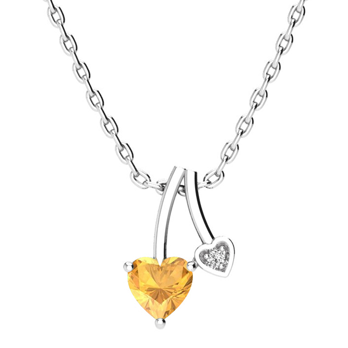 1/2 Carat Heart Shaped Citrine and Diamond Necklace In Sterling Silver With 18 Inch Chain