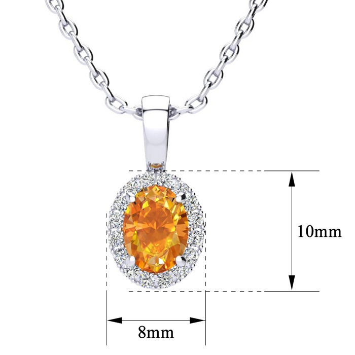 1 Carat Oval Shape Citrine and Halo Diamond Necklace In Sterling Silver With 18 Inch Chain