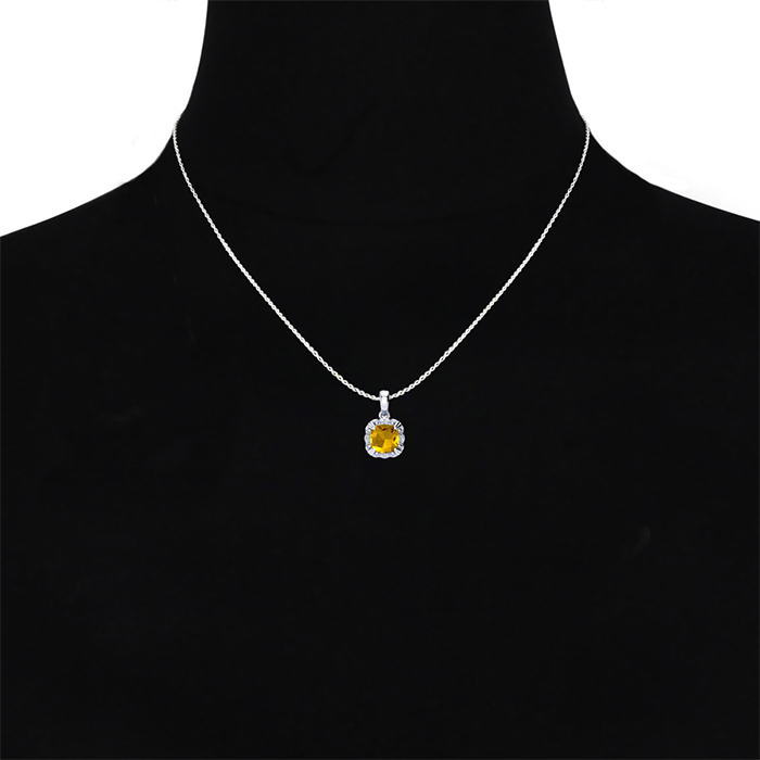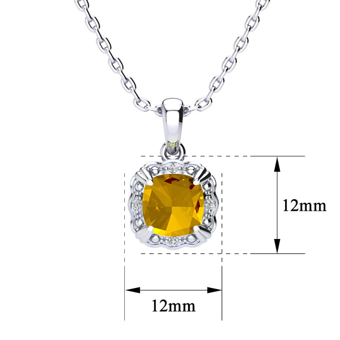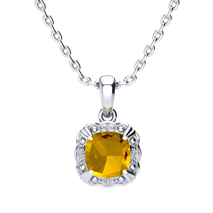 2 Carat Cushion Cut Citrine and Diamond Necklace In Sterling Silver With 18 Inch Chain