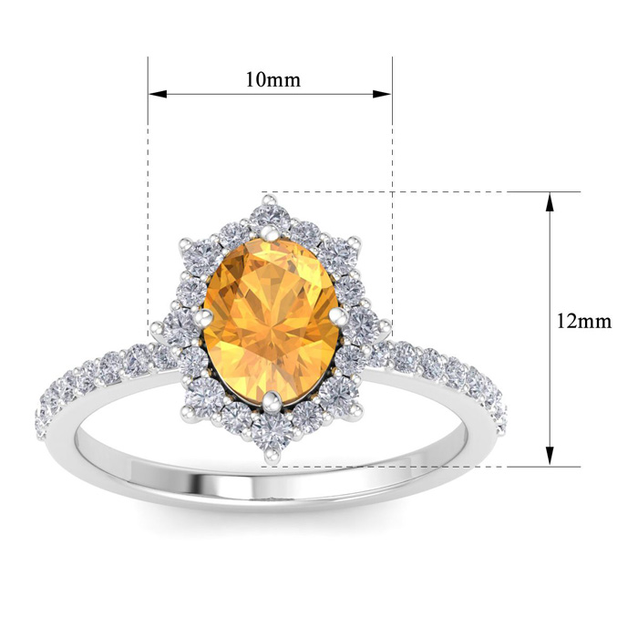 Retrograde Birthstones™ 1 1/2 Carat Oval Shape Citrine and Diamond Ring In 14K White Gold