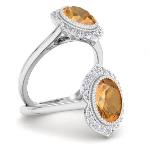 1 1/5 Carat Oval Shape Citrine and Diamond Ring In 14K White Gold