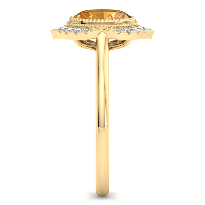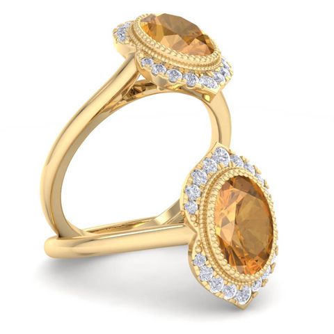 1 1/5 Carat Oval Shape Citrine and Diamond Ring In 14K Yellow Gold