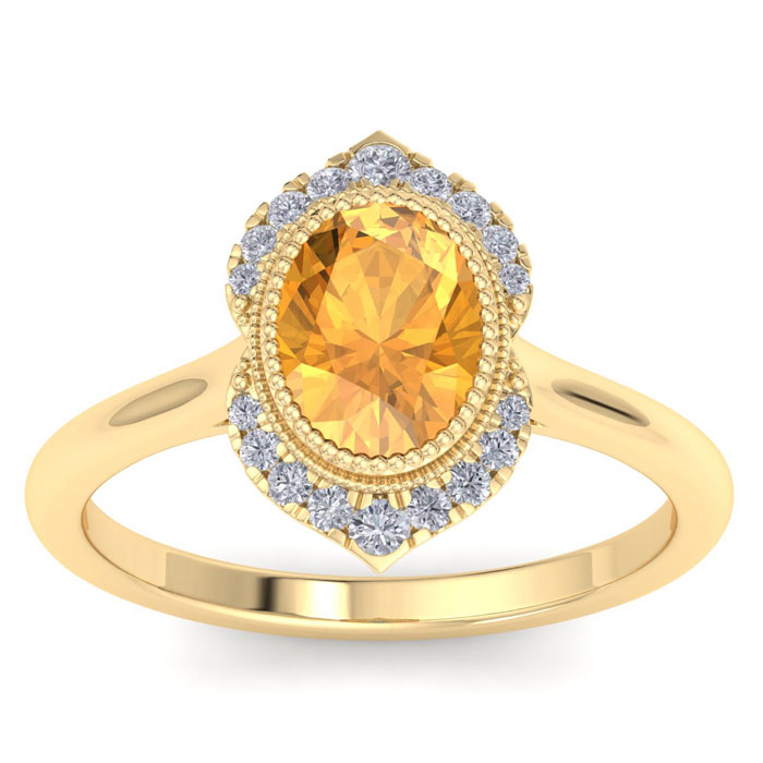 Retrograde Birthstones™ 1 1/5 Carat Oval Shape Citrine and Diamond Ring In 14K Yellow Gold