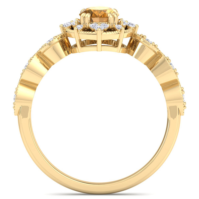 1 Carat Citrine and Halo Diamond Ring In 14K Yellow Gold