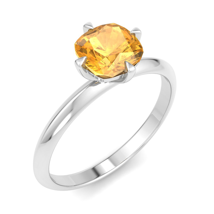 Retrograde Birthstones™ 1 Carat Cushion Shape Citrine Ring In 14K White Gold