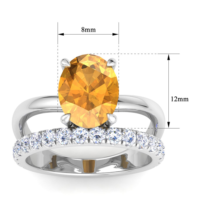 2 3/4 Carat Oval Shape Citrine and Halo Diamond Ring Plus Band In 14 Karat White Gold