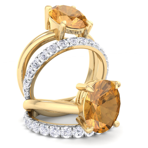 2 3/4 Carat Oval Shape Citrine and Halo Diamond Ring Plus Band In 14 Karat Yellow Gold