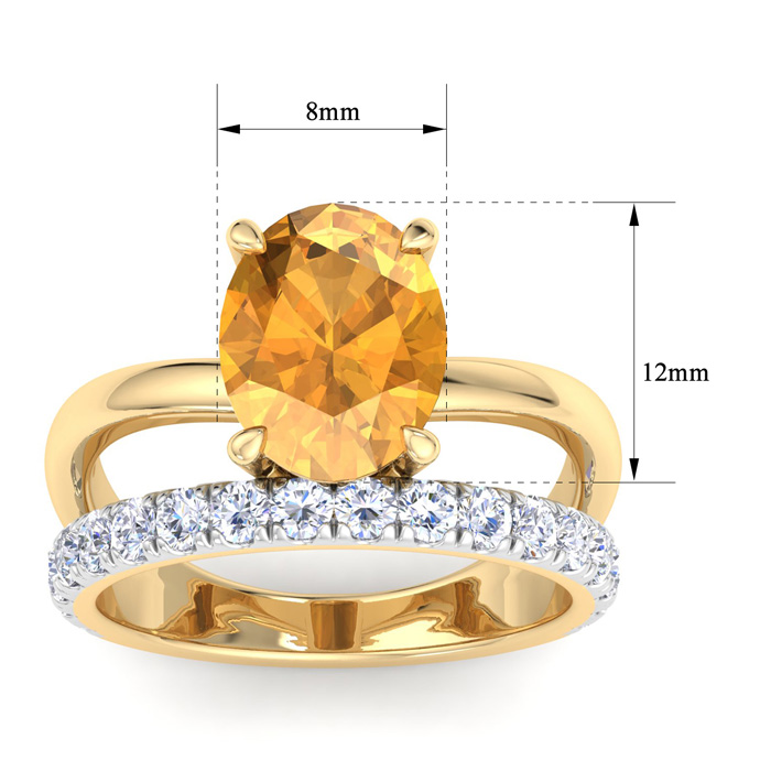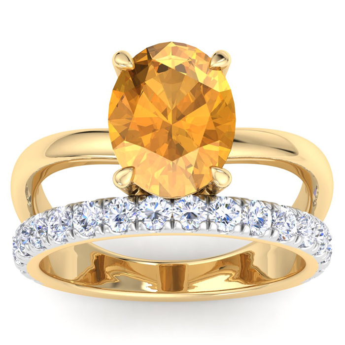 2 3/4 Carat Oval Shape Citrine and Halo Diamond Ring Plus Band In 14 Karat Yellow Gold