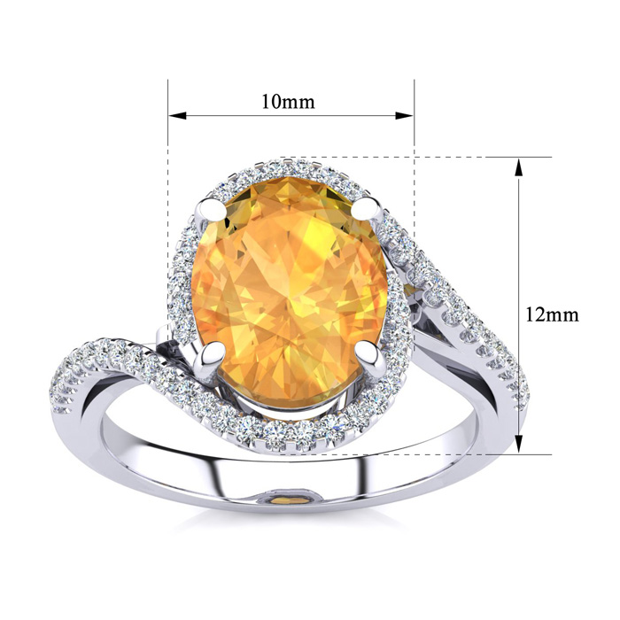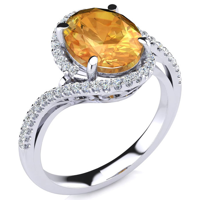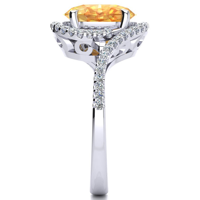 2 3/4 Carat Oval Shape Citrine and Halo Diamond Ring In Sterling Silver