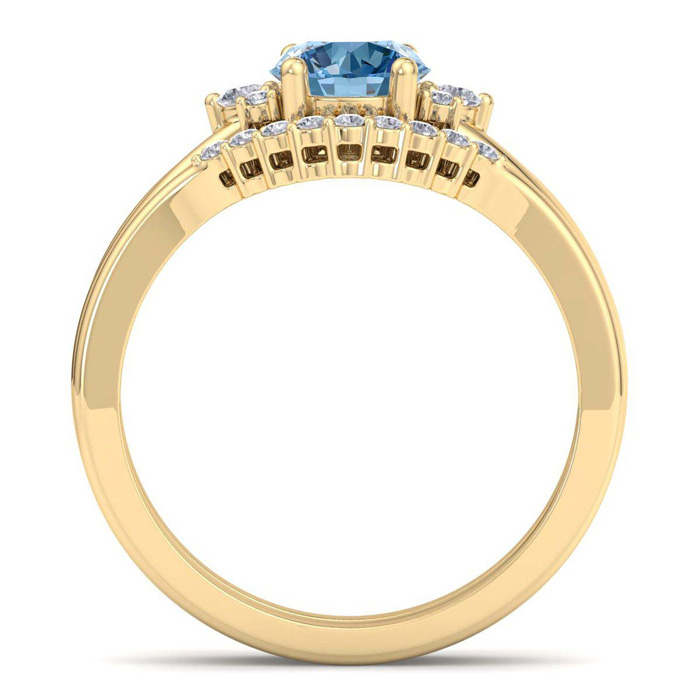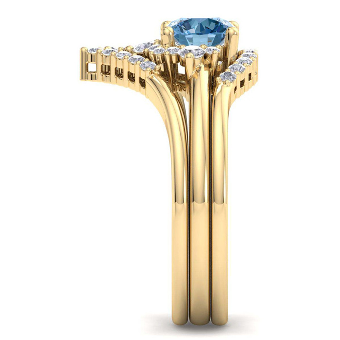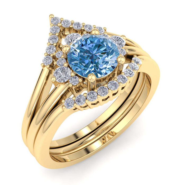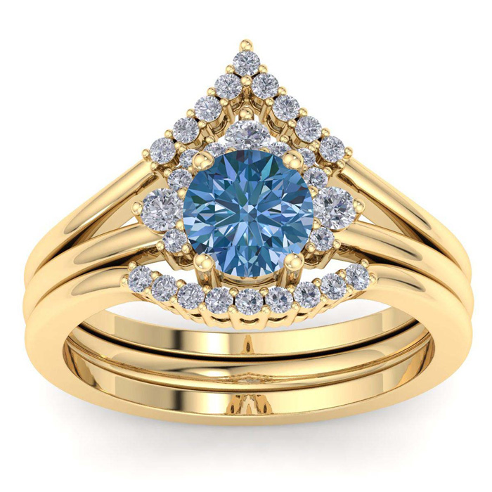 1 1/5 Carat Blue Diamond Bridal Set With Crown In 14 Karat Yellow Gold