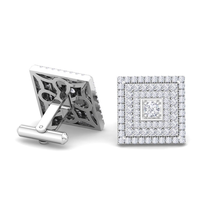 3 1/2 Carat Lab Grown Diamond Cufflinks For Men In 14 Karat White Gold