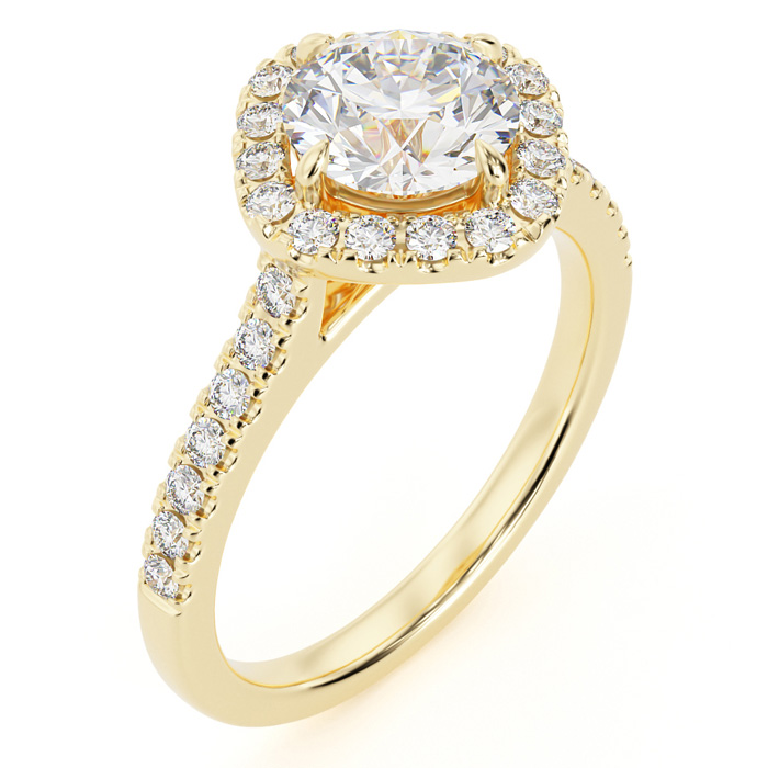 1 1/3 Carat Natural Cushion Style Halo Diamond Engagement Ring in 14 Karat Yellow Gold