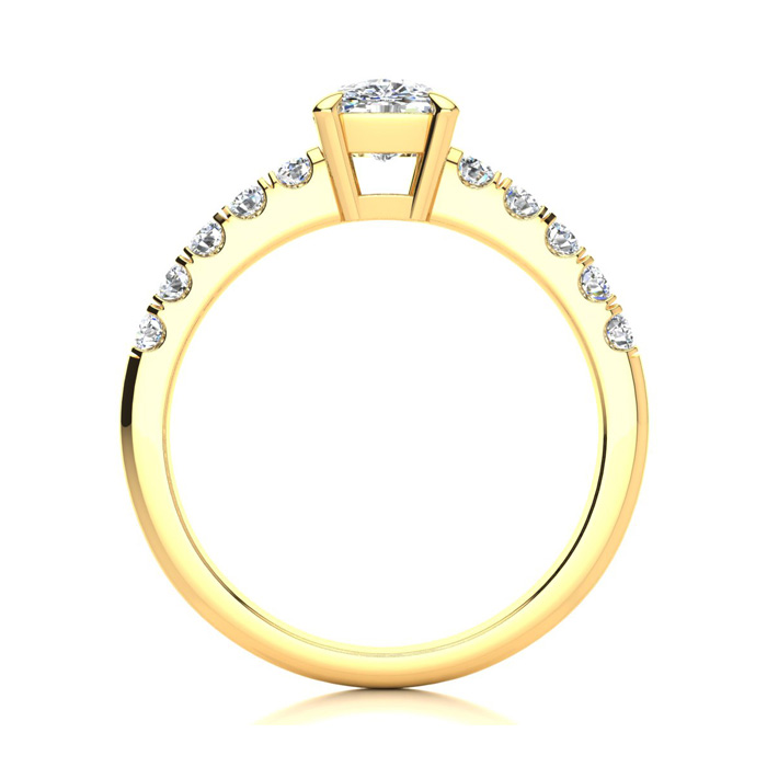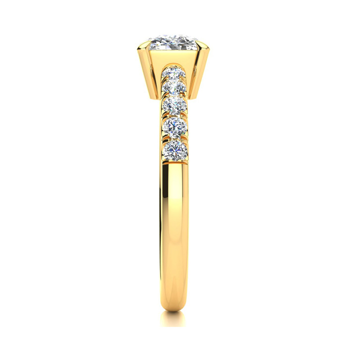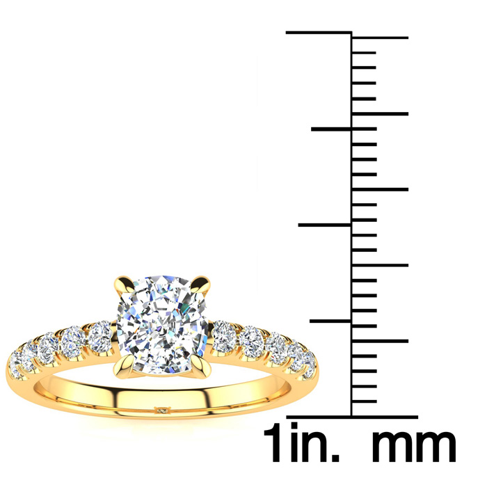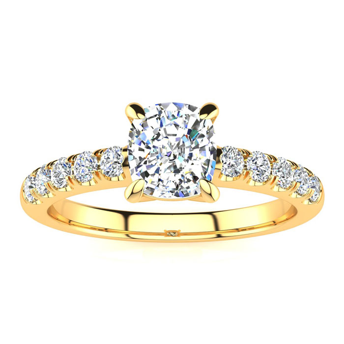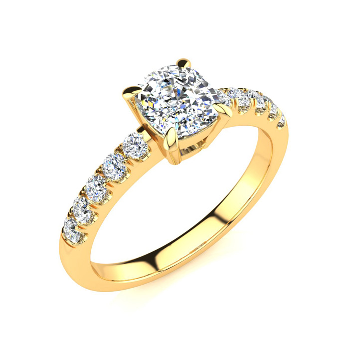 1 1/3 Carat Natural Traditional Diamond Engagement Ring with 1 Carat Natural Center Cushion Cut Solitaire In 14 Karat Yellow Gold