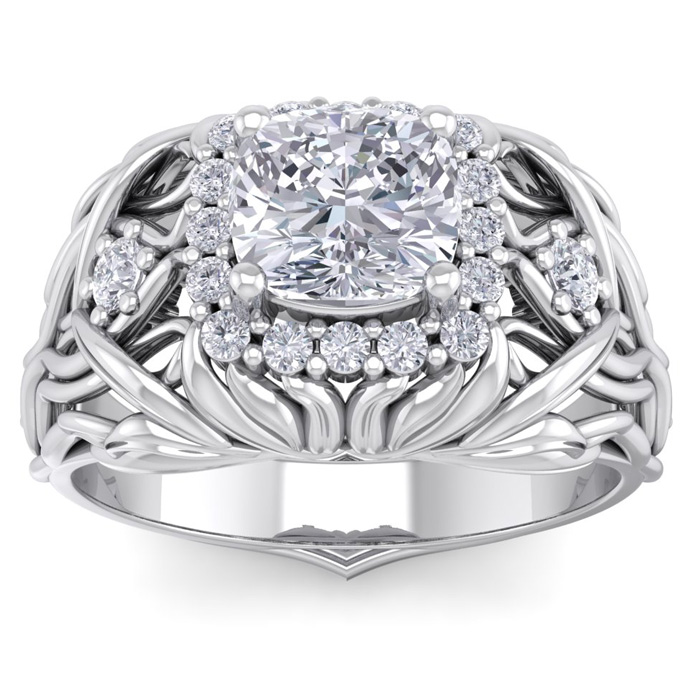 1 1/5 Carat Natural Cushion Cut Halo Diamond Intricate Vine Engagement Ring In 14 Karat White Gold