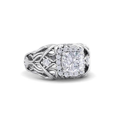 1 1/5 Carat Natural Cushion Cut Halo Diamond Intricate Vine Engagement Ring In 14 Karat White Gold