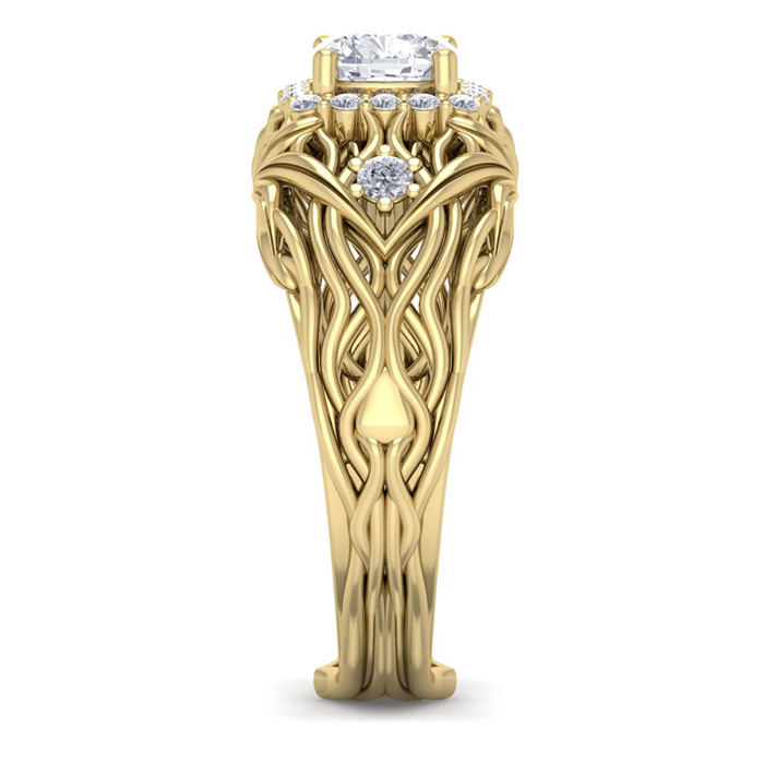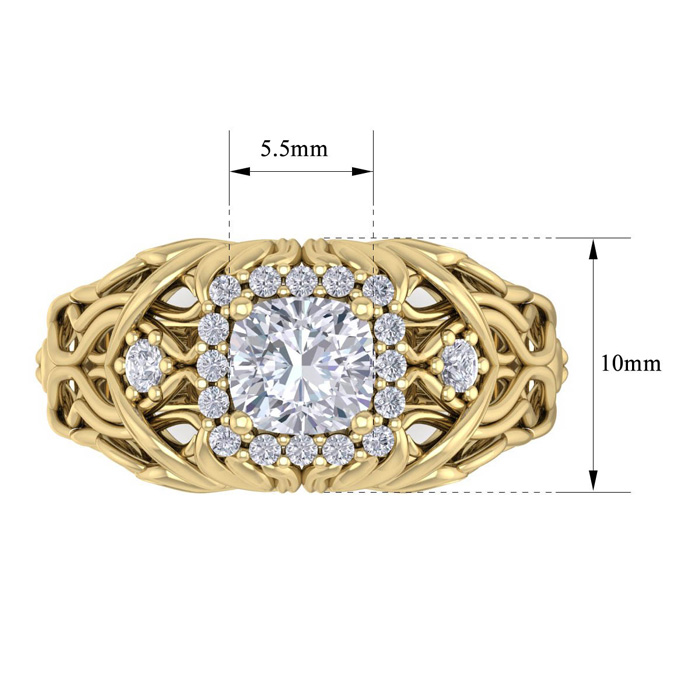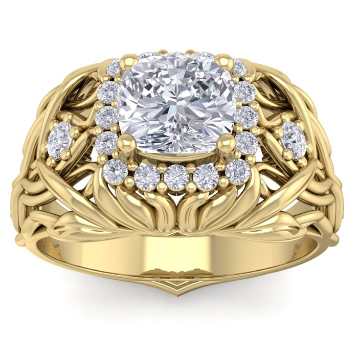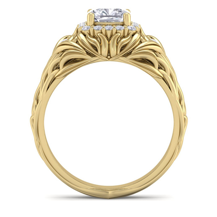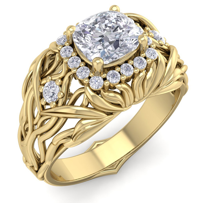 1 1/5 Carat Natural Cushion Cut Halo Diamond Intricate Vine Engagement Ring In 14 Karat Yellow Gold