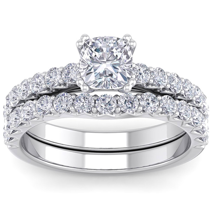 1 3/4 Carat Natural Cushion Cut Diamond Bridal Set In 14 Karat White Gold