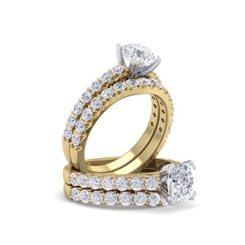 1 3/4 Carat Natural Cushion Cut Diamond Bridal Set In 14 Karat Yellow Gold