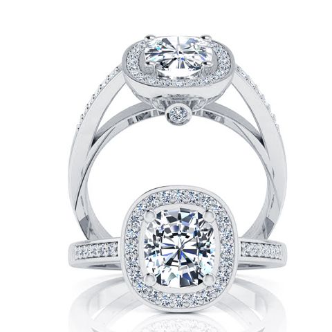1 3/4 Carat Natural Cushion Cut Halo Diamond Engagement Ring In 14 Karat White Gold