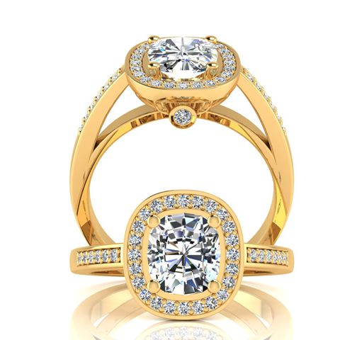 1 3/4 Carat Natural Cushion Cut Halo Diamond Engagement Ring In 14 Karat Yellow Gold