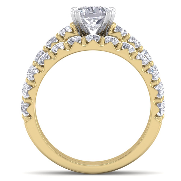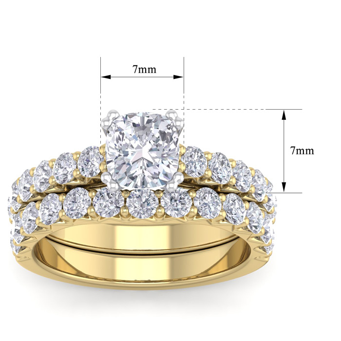 2 1/2 Carat Natural Cushion Cut Diamond Bridal Set In 14 Karat Yellow Gold