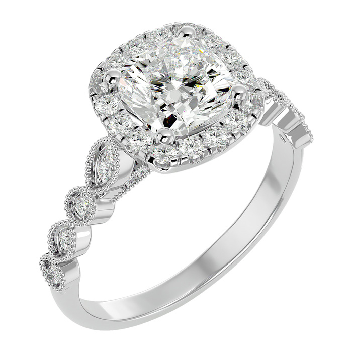 2 1/2 Carat Cushion Cut Diamond Engagement Ring In 14 Karat White Gold