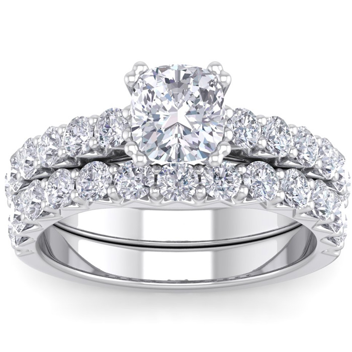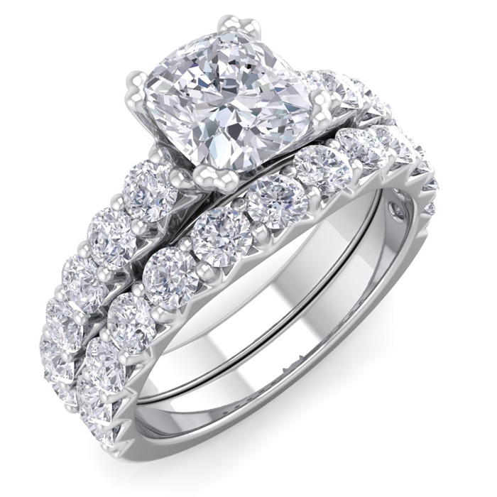 2 1/2 Carat Cushion Cut Lab Grown Diamond Bridal Set In 14 Karat White Gold
