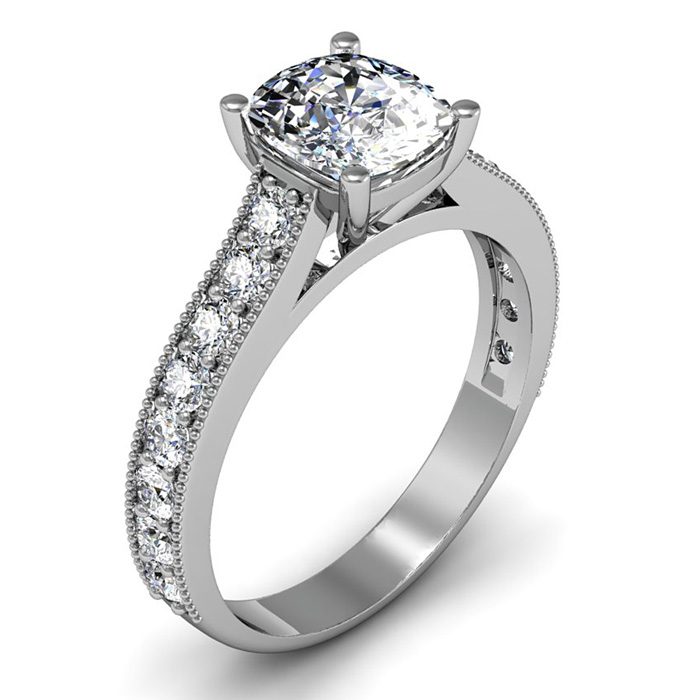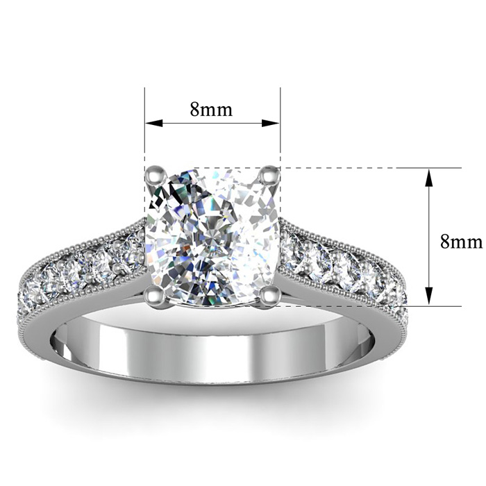 Special Purchase! Due to a limited special purchase by our buyer, SuperJeweler is able to offer this ring at an unheard of value. If you are in the market for an Important Diamond Ring, don't wait. Beautiful traditional and timeless diamond engagement ring that will make any bride happy. With 2.50 carats of fiery diamonds, this engagement ring includes a 2.00 carat clarity enhanced cushion cut center diamond and 16 shimmering diamonds set in milgrain channels on the band. White I-J color diamonds of I1-I2 clarity and mounted in 14k white gold.