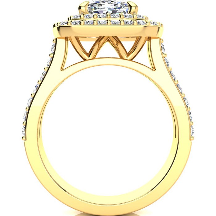 2 1/2 Carat Natural Double Halo Cushion Cut Diamond Engagement Ring in 14 Karat Yellow Gold
