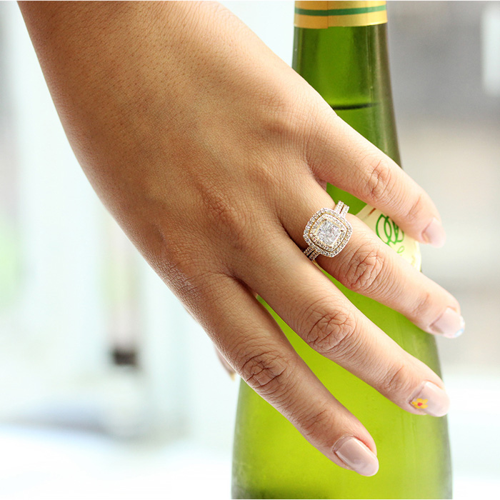 Super-Massive! She deserves this 2.50 carat total diamond weight halo engagement ring. And you will be rewarded! She will love this when you give it to her and you will love the savings. Why spend 2 months salary when you can spend so much less and get a big, beautiful and fantastic diamond engagement ring for so much less? This wedding ring features a 1.50 carat cushion cut clarity enhanced center diamond, surrounded in a halo of 76 accent diamonds. Diamond color is H-J and diamond clarity is I1-I2. Grades are expressed as averages.