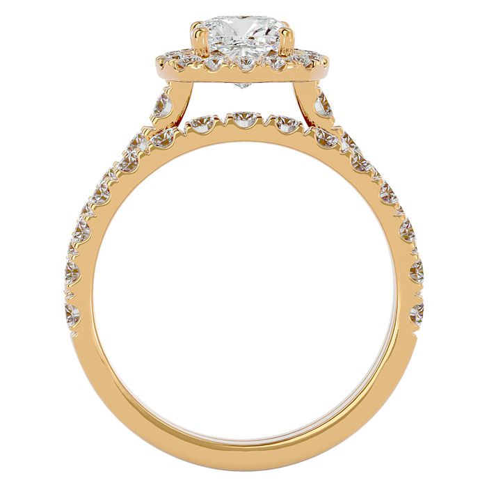 2 1/4 Carat Cushion Cut Halo Diamond Bridal Set In 14 Karat Yellow Gold