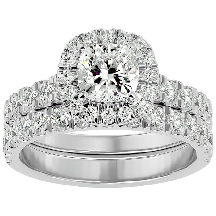 2 1/4 Carat Cushion Cut Halo Lab Grown Diamond Bridal Set In 14 Karat White Gold