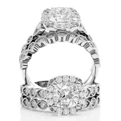2 Carat Cushion Cut Diamond Bridal Set In 14 Karat White Gold
