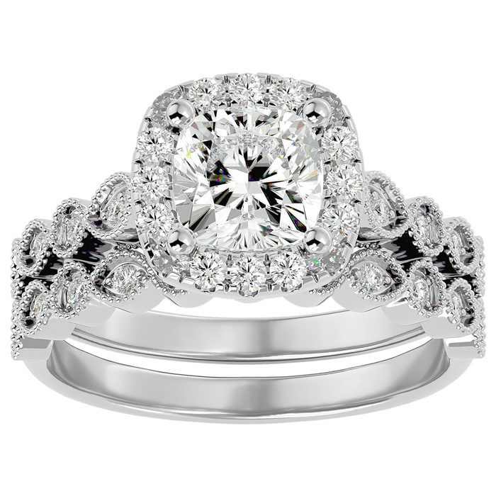 2 Carat Cushion Cut Diamond Bridal Set In 14 Karat White Gold
