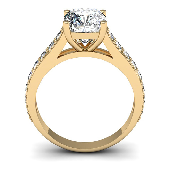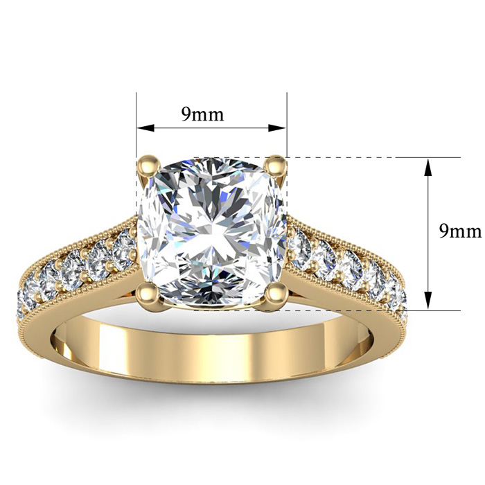 2 Carat Natural Diamond Engagement Ring With 1 1/2 Carat Natural Cushion Cut Center Diamond In 14K Yellow Gold