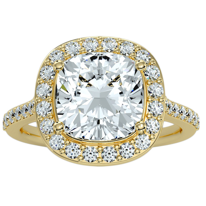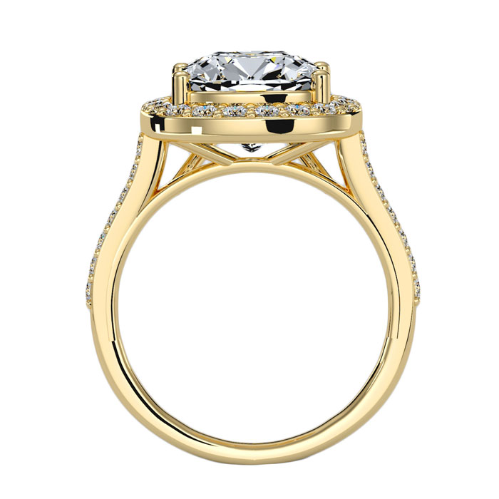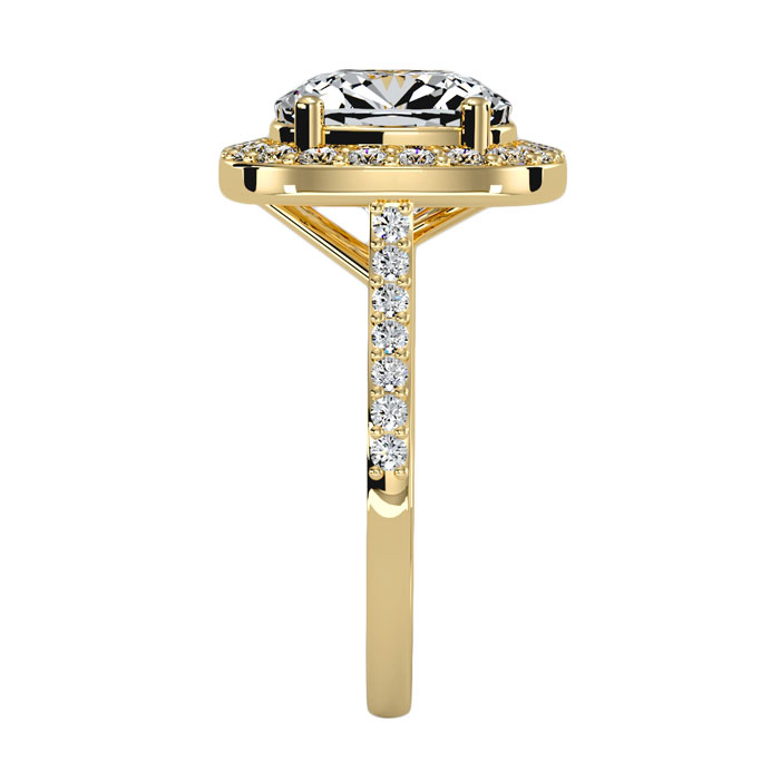 Around the center diamond, there are 34 smaller diamonds that add even more sparkle to the ring. Together, they create a lovely halo effect that makes the ring even more eye-catching. These smaller diamonds contribute an extra 1/2 carat of dazzle to the overall design.