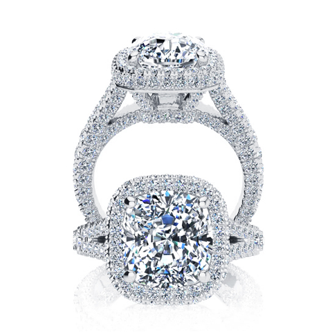 6 Carat Natural Cushion Cut Halo Diamond Engagement Ring In 14K White Gold
