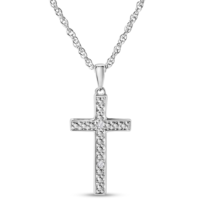 Diamond Accent Cross Necklace In Platinum Overlay, 18 Inches