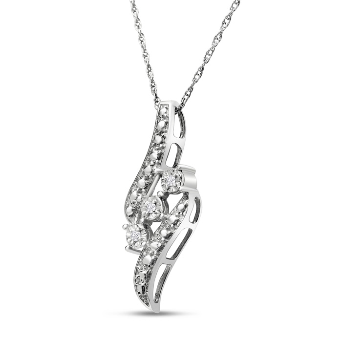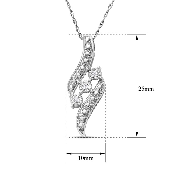 Diamond Accented Modern Pendant Necklace In Sterling Silver With Free 18 Inch Chain