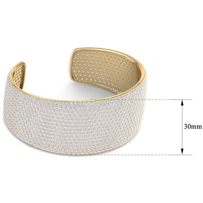 29 Carat Diamond Bangle Bracelet In 14K Yellow Gold, 1.20 Inches Wide