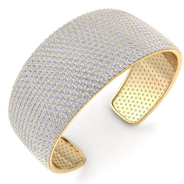 29 Carat Lab Grown Diamond Bangle Bracelet In 14K Yellow Gold, 1.20 Inches Wide