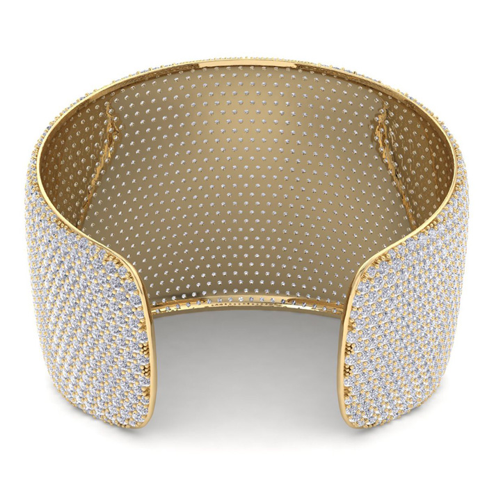 52 Carat Diamond Bangle Bracelet In 14K Yellow Gold, 2 Inches Wide