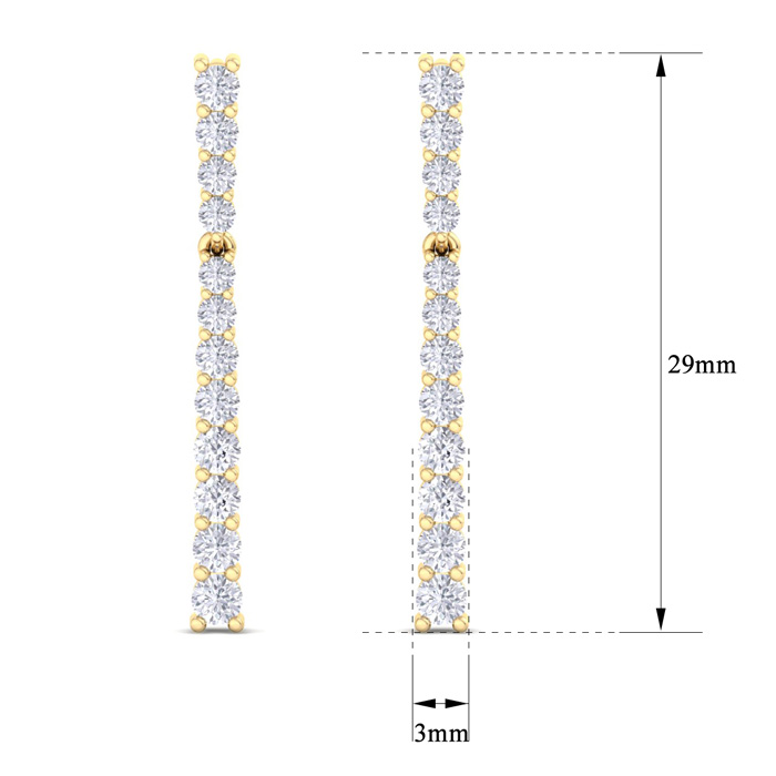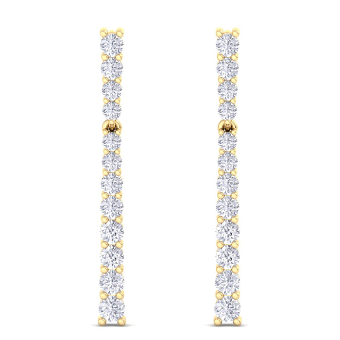 1 Carat Lab Grown Diamond Bar Earrings In 14 Karat Yellow Gold, 1 Inch